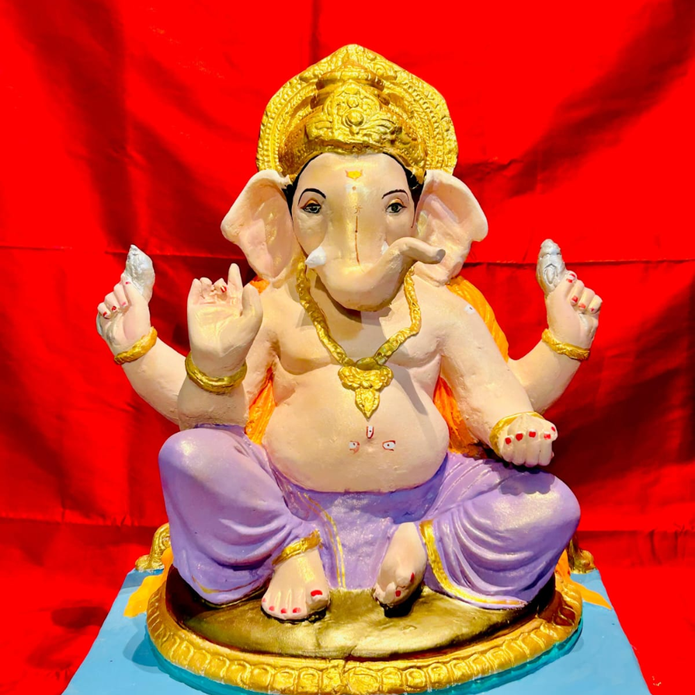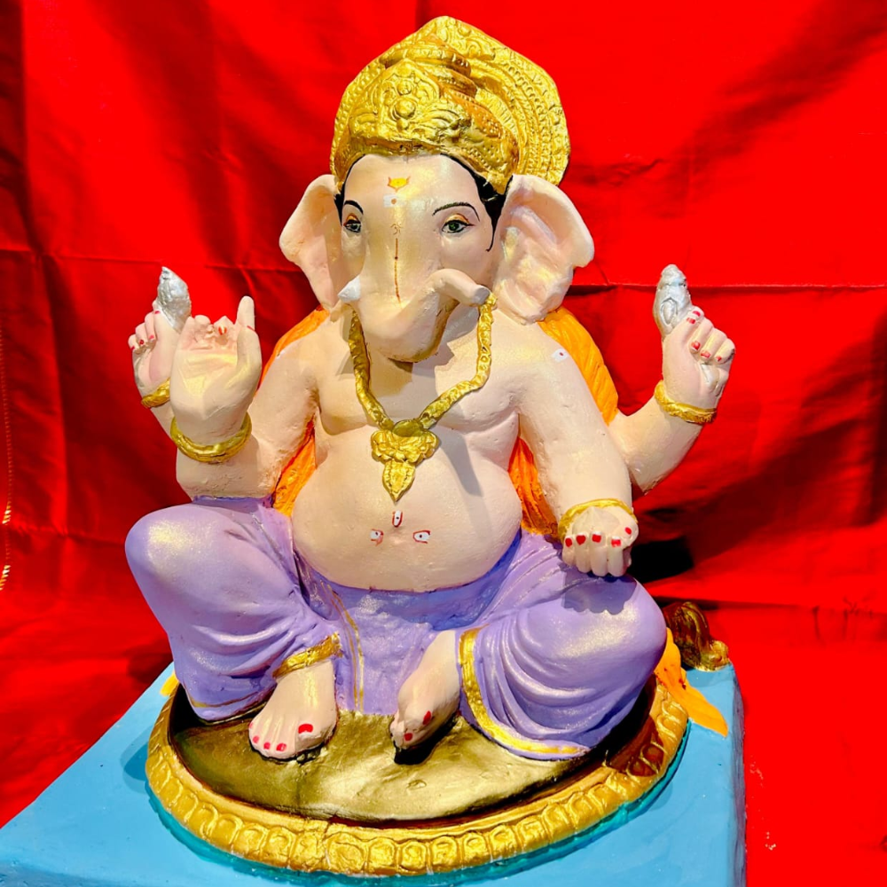 A medium-sized eco-friendly Ganesha idol in classic Asanmandi pose — blending devotion, detail, and sustainability.